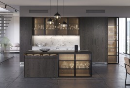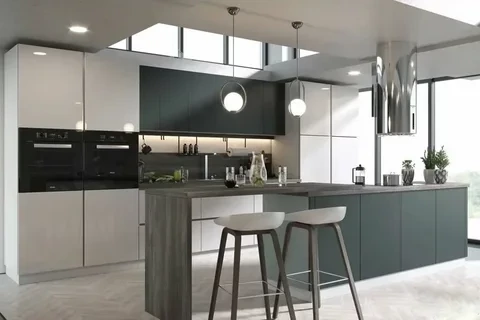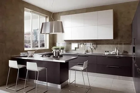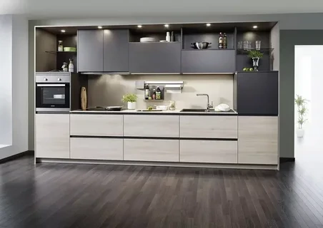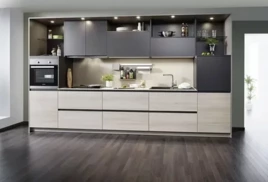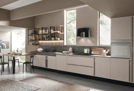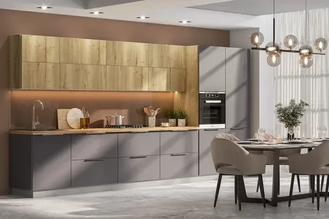 Модерн идеально подходит для небольших кухонь – за счет обилия глянцевых поверхностей достигается эффект расширения пространства. Минималистичные текстуры и смелые геометрические формы, оформление в нейтральных цветах вместе с полированной отделкой и асимметрией являются ключевыми идентифицирующими признаками стиля Модерн.